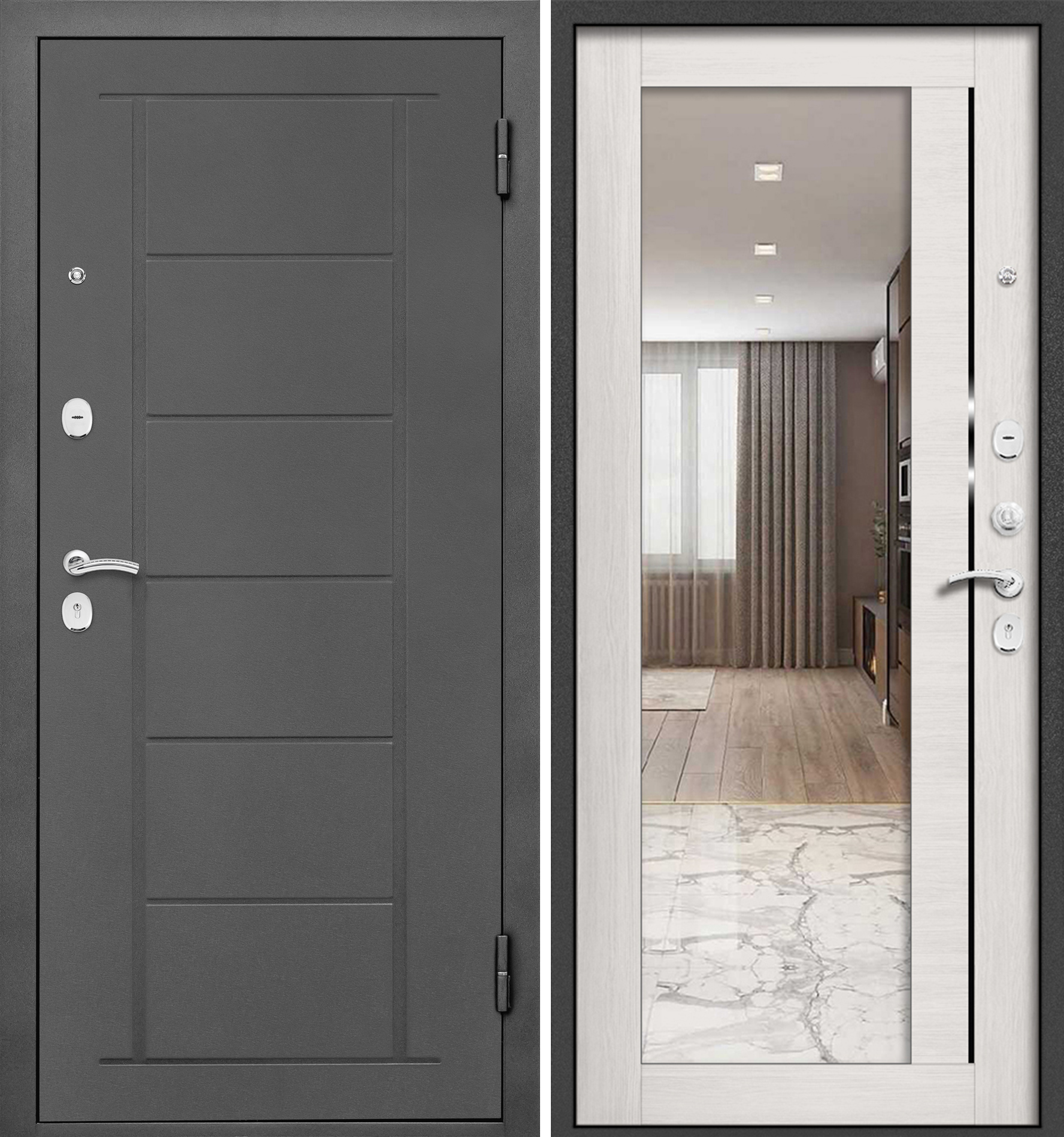 Внутреннее покрытие Царговая МДФ панель с зеркалом и вставкой из чёрного стекла, 12 мм