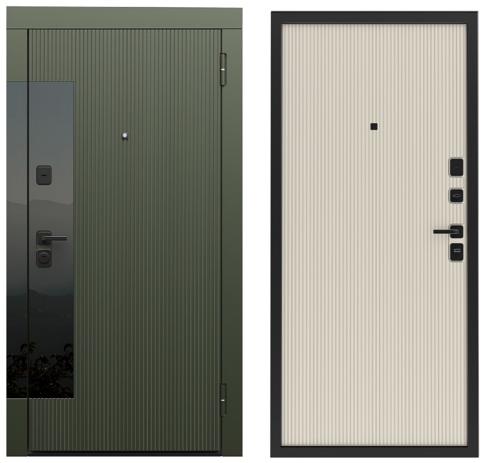 ОТДЕЛКА СНАРУЖИ Панель МДФ 16 мм, пленка, цвет  «Олива» (102), вставка с черным глянцевым стеклом