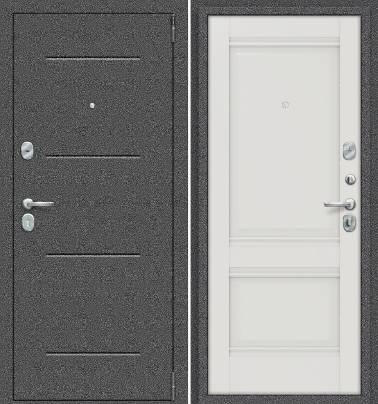 Три горизонтальных усиливающих омега-профиля (ребра) создают единую монолитную жесткость и прочность конструкции. Сверхпрочная конструкция «6x2» - двойная толщина стали профиля полотна, двух контуров коробки, в зонах замка и петель. Дополнительную стойкость ко взлому обеспечивают два противосъемных штыря с цинковым покрытием (для защиты металла от коррозии).
